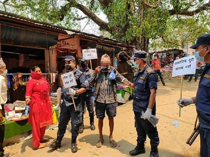 कोभिड-१९ को संक्रमण रोक्न नेपाल सरकार स्वास्थ्य मन्त्रालयद्वारा तोकिएको सुरक्षा मापदण्डलाई दुरुस्त रुपमा कार्यान्वयनका लागि नेपाल प्रहरीले ‘तपाईंको मास्क खै ?’