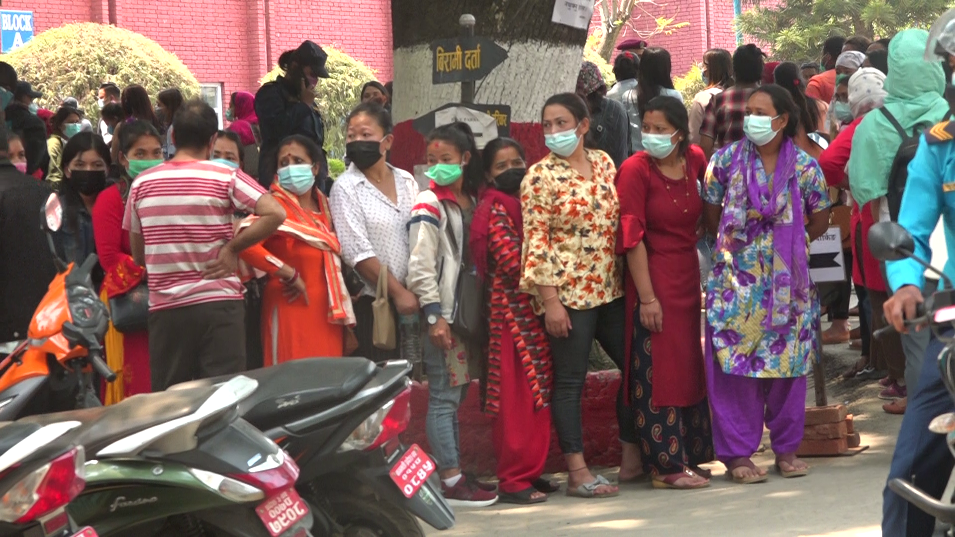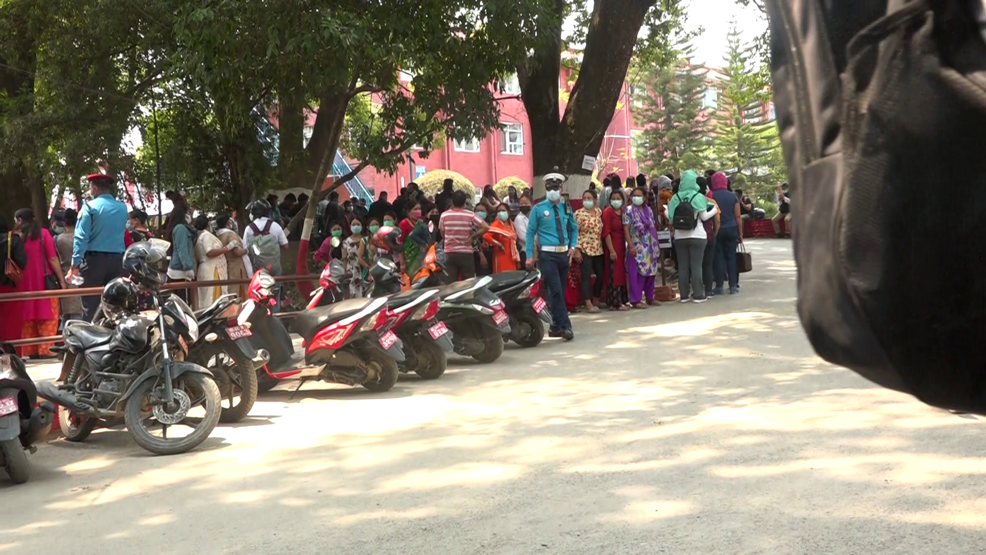 सरकारले आइतवारबाट १८ वर्षदेखि ५९ वर्षसम्मका व्यक्तिहरुलाई खोप लगाउन थालेको छ । खोप केन्द्र थोरै हुनु र बिहीबार बिहानदेखि निषेधाज्ञा शुरु हुने भएपछि भीड बढेको छ ।