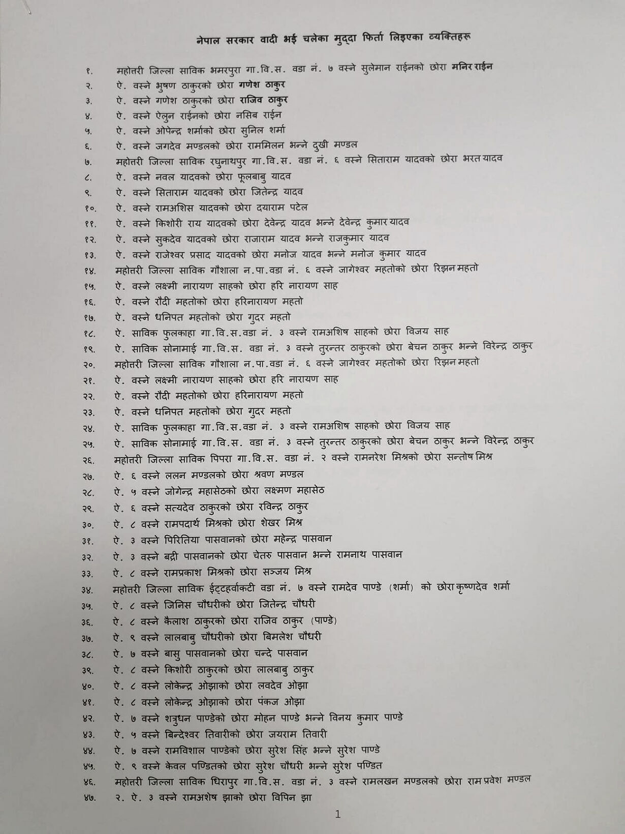 सरकारले लियो १२० प्रतिवादीको मुद्दा फिर्ता (नामावलीसहित)