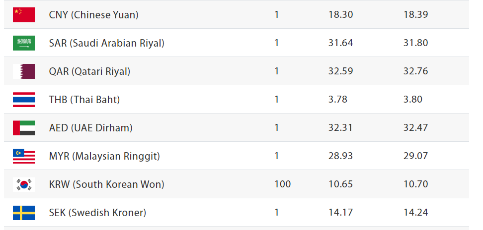 राष्ट्र बैंकका अनुसार कतारी रियलको खरिददर ३२ रुपैयाँ ५९ पैसा र बिक्रीदर ३२ रुपैयाँ ७६ पैसा रहेको छ भने सायदी अरवियन रियलको खरिददर ३१ रुपैयाँ ६४ पैसा बिक्रिदर ३१ रुपैयाँ ८० पैसा रहेको राष्ट्र बैंकले जनाएको छ ।