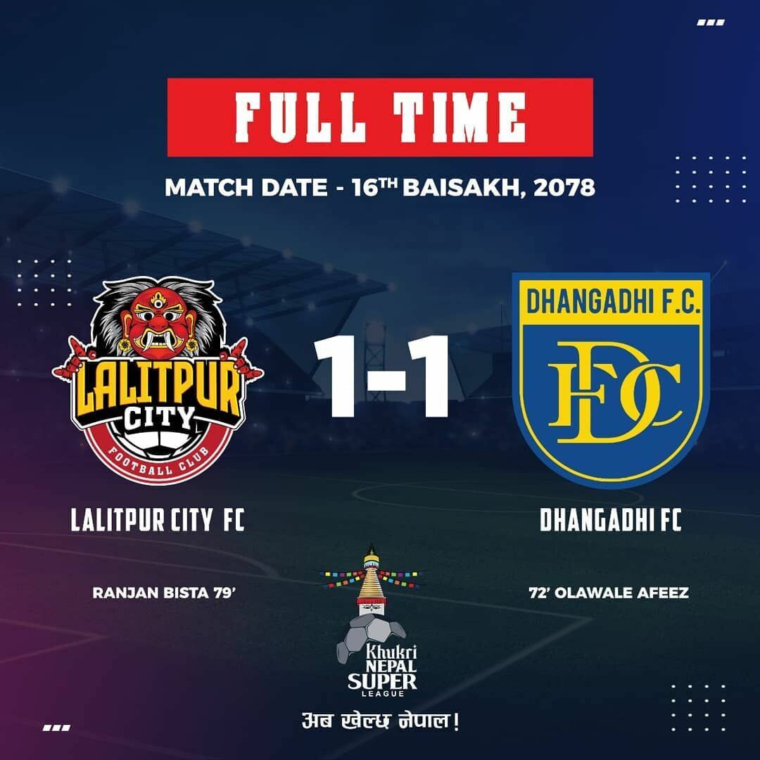 तर, खेलको ७९औं मिनेटमा ललितपुरका सब्स्टिच्युट खेलाडी रंजन विष्टले गोल गर्दै खेललाई बराबरीमा पुर्याए।