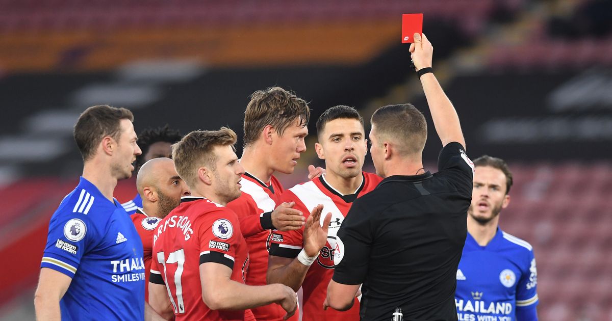 साउथह्याम्पटनको घरेलु मैदान सेन्ट मेरिज स्टेडियममा भएको खेलको १० मिनेटमा नै घरेलु टोली १० खेलाडीमा सीमित हुन पुगेको थियो। लेस्टरका स्ट्राइकर जेमी भार्डीलाई फल गर्दै साउथह्याम्पटनका डिफेन्डर यानिक वेष्टरगार्डले सिधै रातो कार्ड पाएर मैदान छाडेका थिए।