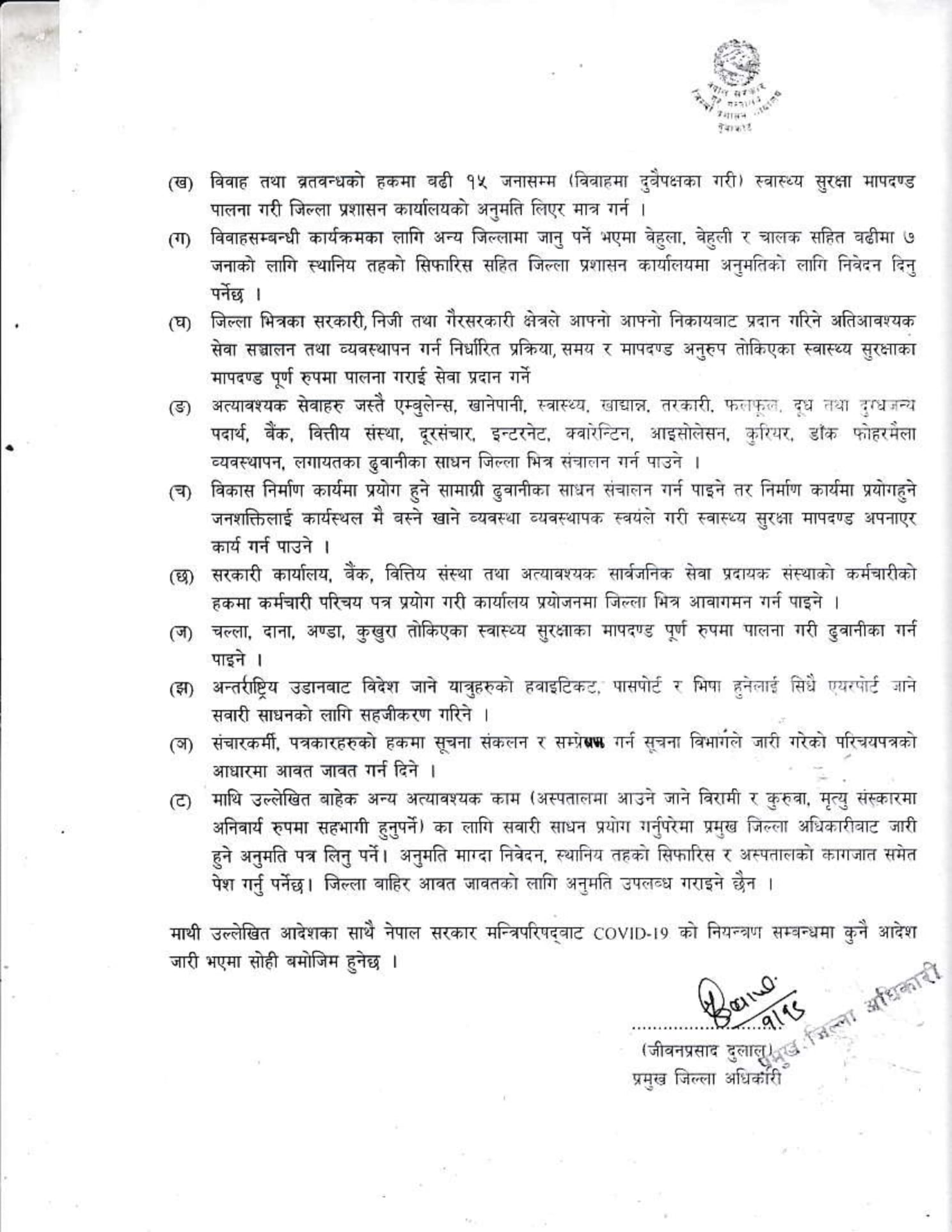 साथै निषेधाज्ञा अवधीभर अत्यावश्यक बाहेकका सेवाहरु बन्द गरिने उनले बताए ।