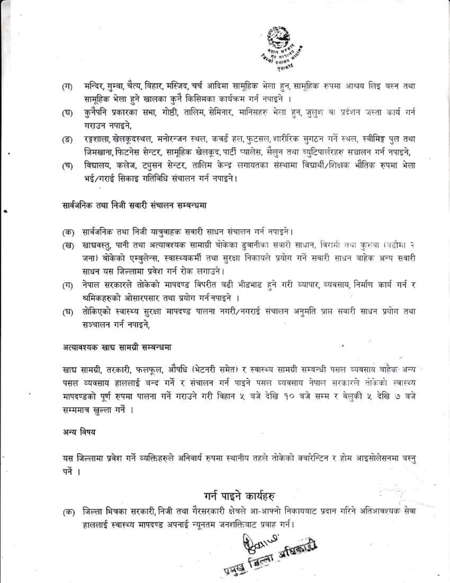 त्यस्तै नेपालमा कोरोना संक्रमणको जोखिम बढेपछि गत बिहीवारदेखि काठमाडौं उपत्यका लगायतका जिल्लाहरुमा निषेधाज्ञा गरिएको छ ।