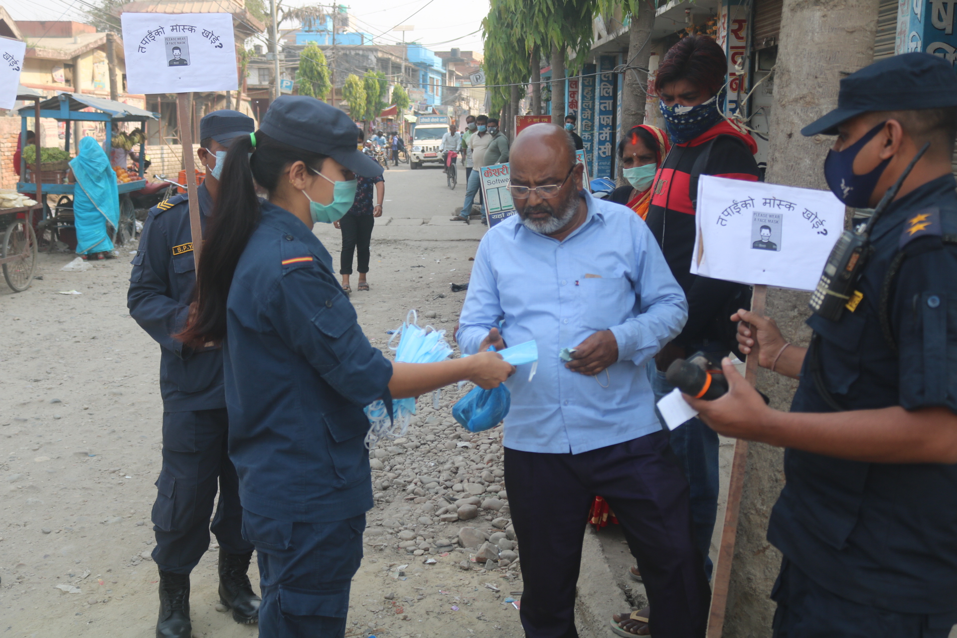 नयाँ भेरियन्ट सहितको कोभिड-१९ को संक्रमण बढ्दै गएको सन्दर्भमा यसबाट सिर्जना हुन सक्ने समस्या र चुनौतीलाई दृष्टिगत गरी संक्रमण रोक्न तोकिएको सुरक्षा मापदण्डलाई दुरुस्त रुपमा कार्यान्वयनका लागि नेपाल प्रहरीले ‘संक्रमणबाट आफू बचौँ र अरुलाई पनि बचाऔँ’ भन्ने नारा सहित ‘तपाईंको मास्क खै ?’ लगायतका विभिन्न सचेतनामूलक कार्यक्रमलाई अभियानकै रुपमा सञ्चालन गरेको हो ।