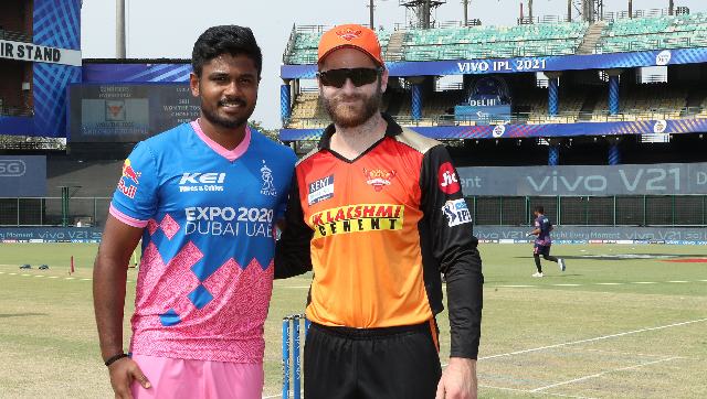 Kane Williamson of Sunrisers Hyderabad and Sanju Samson Captain of Rajasthan Royals during match 28 of the Vivo Indian Premier League between the Rajasthan Royals and the Sunrisers Hyderabad held at the Arun Jaitley Stadium, Delhi, India on the 2nd May 2021 Photo by Ron Gaunt / Sportzpics for IPL