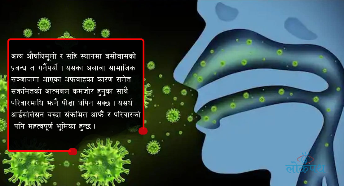कोरोनाको दोस्रो लहर तिव्र भएसँगै बढेको उच्च संक्रमणदरका घटनासँग अन्य उपक्रम पनि जोडिएर आएका छन् जस्तो कि एम्बुलेन्समा बिरामी घुमाउँदा घुमाउँदा मृत्युवरण गर्नुपरेको, अक्सिजनको चरम अभाव झेल्नुपरेको, बेडको अभाव, उपचारको नाममा अस्पतालले उठाएको अचाक्ली शुल्क, संक्रमणपछि संक्रमित र परिवारमा भएको अन्यौलता, होम आईसोलेसन बसेका संक्रमितले आत्महत्याजस्तो कठोर निर्णय लिएको घटना लगायतका खबर बारम्बार दोहोरिरहेका छन् । त्यसैले लोकपथ डटकमले चिकित्सकले दिएका विभिन्न उपाय र सुझावहरु संकलन गरेर यहाँ प्रस्तुत गरेको छ ।