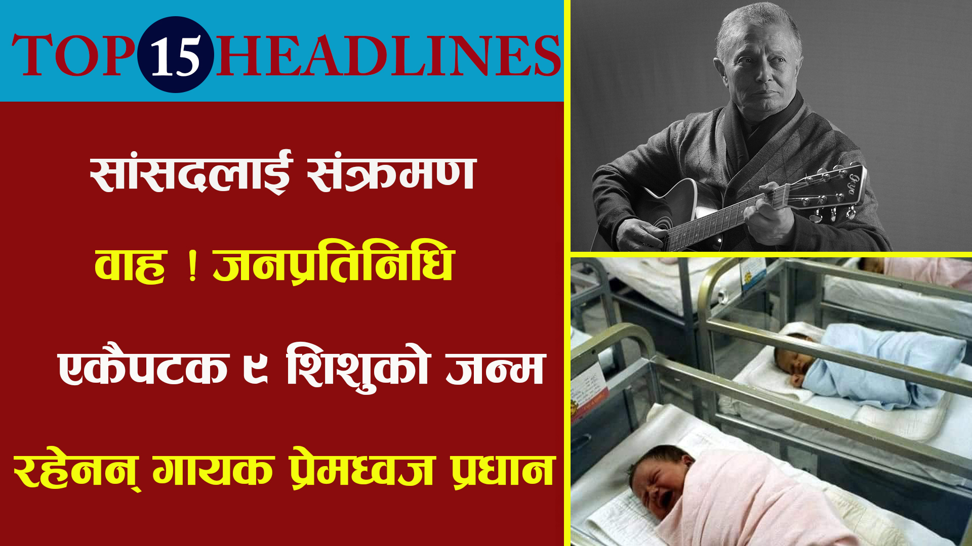 काठमाडौं- लोकपथ टिभीले हरेक दिन टप १५ ‘हेडलाईन्स् ‘ प्रस्तुत गर्दै आएको छ। यस समाचार बुलेटिनमा दिनभरको खबर समेटिएको हुन्छ। प्रस्तुत छ, आजका शीर्ष १५ ‘हेडलाईन्स्’ ।