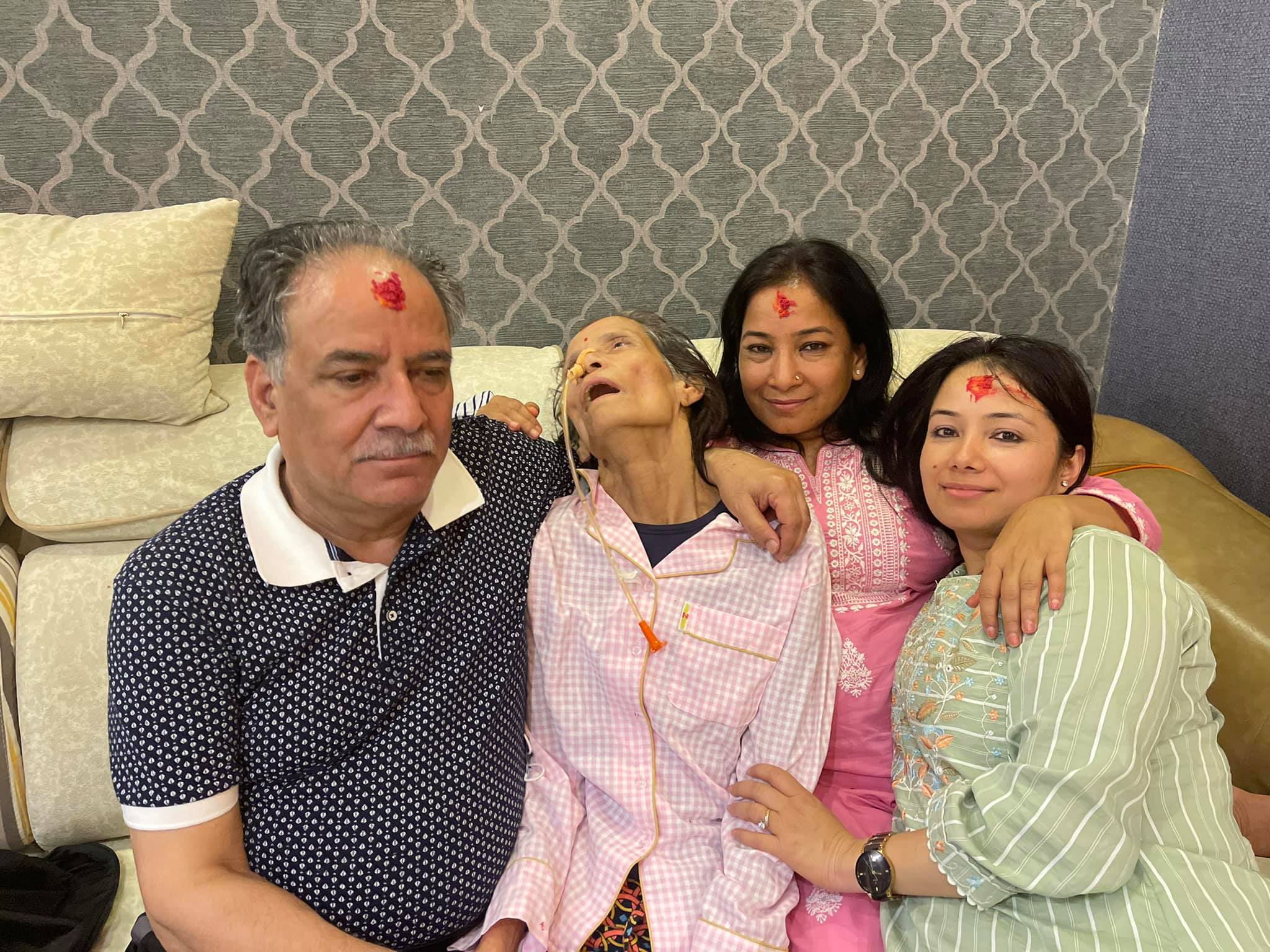 वैवाहिक वर्षगाठको अवसरमा सामाजिक सञ्जालमा नेता, कार्यकर्ता तथा शुभचिन्तकहरुले बिहानैदेखि शुभकामना व्यक्त गरेका छन् । साँझ कान्छि छोरी गंगा दाहालले ‘ह्याप्पी एनिर्भसरी बुबा ममी’ भन्दै अध्यक्ष प्रचण्ड र उनकी पत्नी सिता दाहालको फोटो फेसबुकमा पोष्ट गरेकि छिन्, जुन तस्वीरले धेरैको मन छोएको छ । जहाँ सिता दाहाललाई बिरामी अवस्थामा अरुको साहारामा देख्न सकिन्छ । छोरी गंगाले सो फोटो सेयर गरेसँगै सामाजिक सञ्जालमा सिता दाहालको स्वास्थ्य लाभको कामना समेत गरिएको छ ।