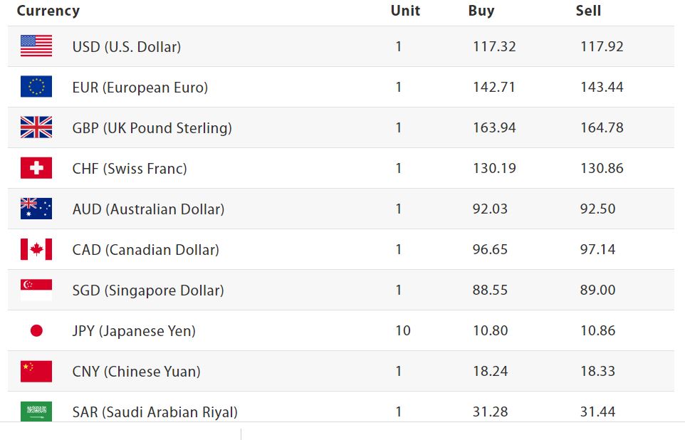 त्यसैगरी, युके पाउन्ड स्टर्लिङको खरिददर १६३ रुपैयाँ ९४ पैसा छ भने बिक्रिदर १६४ रुपैयाँ ७८ पैसा रहेको छ । अष्ट्रेलियन डलरको खरिददर ९२ रुपैयाँ ०३ पैसा र बिक्रिदर ९२ रुपैयाँ ५० पैसा कामय भएको छ ।
