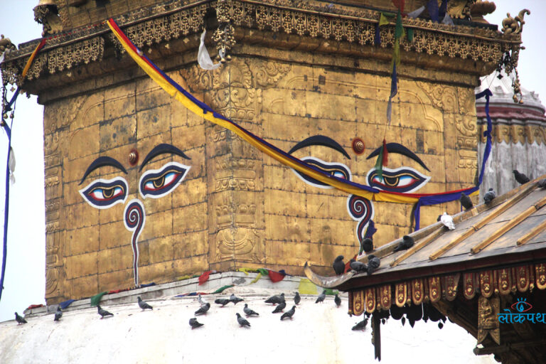 स्वयम्भूनाथमा चहलपहल त छ तर केवल बाँदर, कुकुर र परेवाहरुको ।