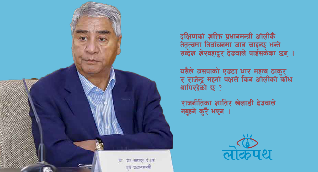 अहिले प्रधानमन्त्री पदका लागि आशक्ति देखाउँदा सभापति पद पनि गुमाउनुपर्ने खतरा उनले देखेका छन् । कांग्रेसभित्र रामचन्द्र पौडेल, शंशाक कोइराला, विमलेन्द्र नीधि र प्रकाशमान सिंहले पनि सभापति पदका लागि रहर गरेका छन् । उनीहरुले देखाएको यस्तो चाहनाको पछाडि कसले धाप दिइरहेको छ भन्ने पनि देउवाले बुझेका छन् ।