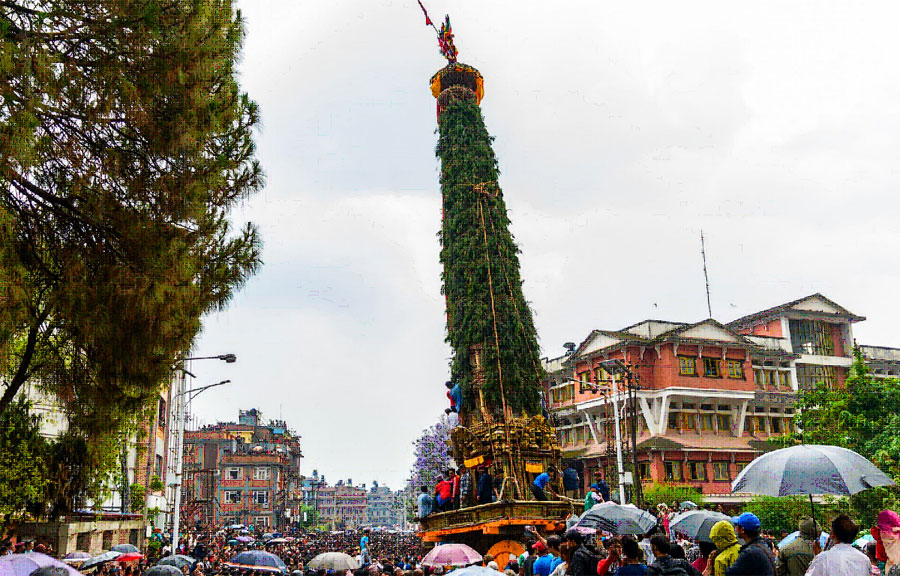 रथ निर्माणको काम अझै जारी रहेकाले दिउँसो ४ देखि ५ बजेभित्रमा रथारोहण गर्ने भएको सो गुठीसँग सम्बन्धित ज्योतिषी दैवज्ञ कीर्तिकिरण जोशीले बताए । उनले भने, “रथ निर्माणको काम सम्पन्न भएपश्चात रथारोहण गर्न जाने तयारी भइरहेको छ ।”