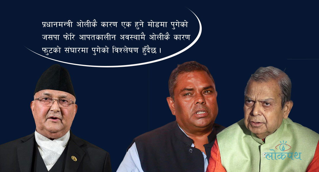 तर जसपा भित्रको अध्यक्ष महन्थ ठाकुर समूह ओलीको पक्षमा र उपेन्द्र यादव समूह ओलीको विकल्पमा नयाँ सरकार बनाउने पक्षमा रहँदा संख्यात्मक हिसावले अब बहुमतको सरकार बन्ने सम्भावना कम देखिएको छ ।