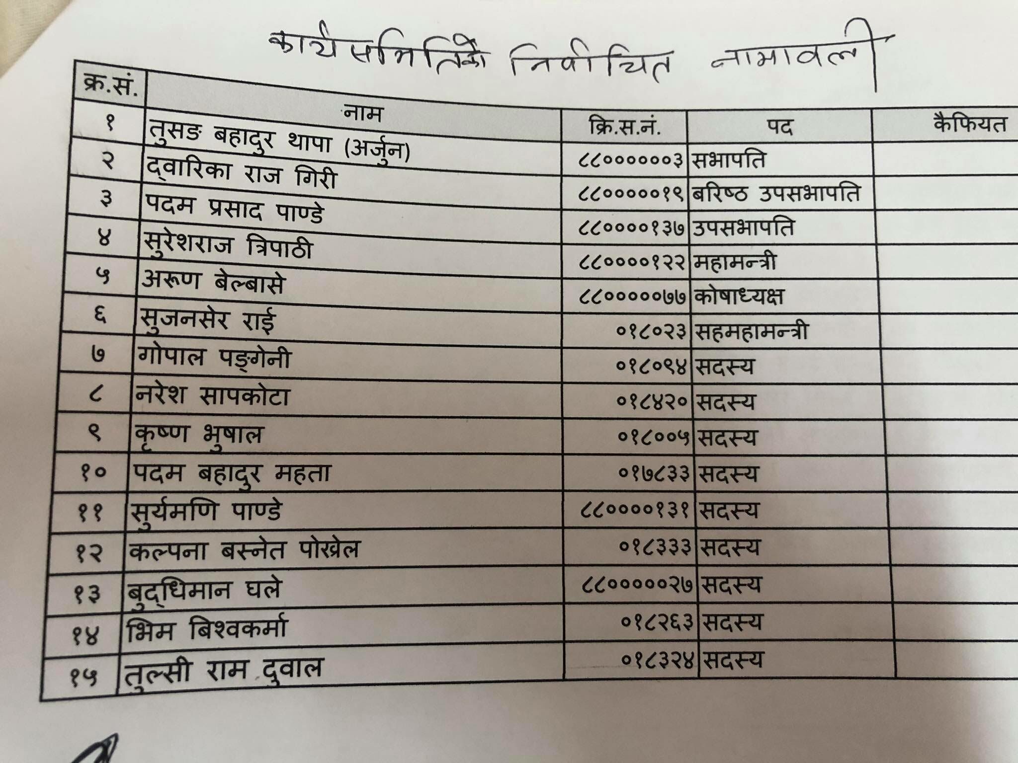 यसैगरी समितिको महामन्त्रीमा सुरेशराज त्रिपाठी, कोषाध्यक्षमा अरुण बेल्बासे, सहमहामन्त्रीमा सुजनसेर राई चयन भएका छन् ।