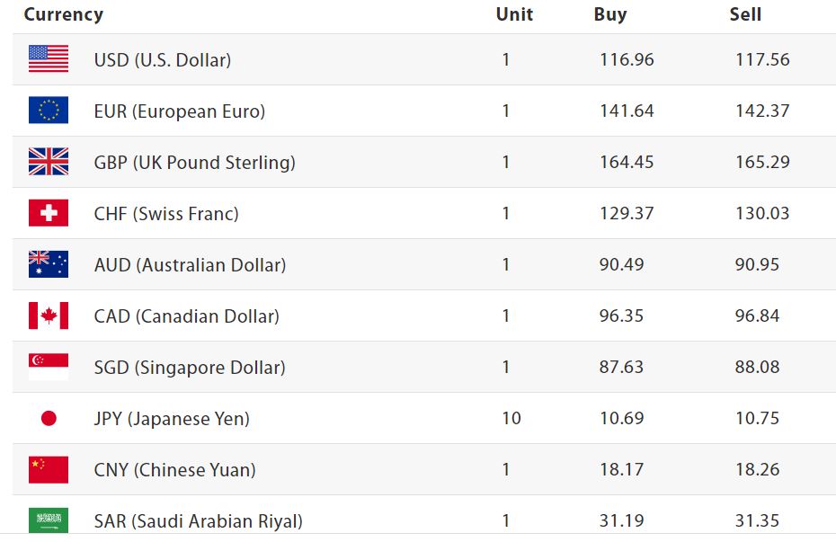 त्यसैगरी, युके पाउन्ड स्टर्लिङको खरिददर १६४ रुपैयाँ ४५ पैसा छ भने बिक्रिदर १६५ रुपैयाँ २९ पैसा रहेको छ । अष्ट्रेलियन डलरको खरिददर ९० रुपैयाँ ४९ पैसा र बिक्रिदर ९० रुपैयाँ ९५ पैसा कामय भएको छ ।