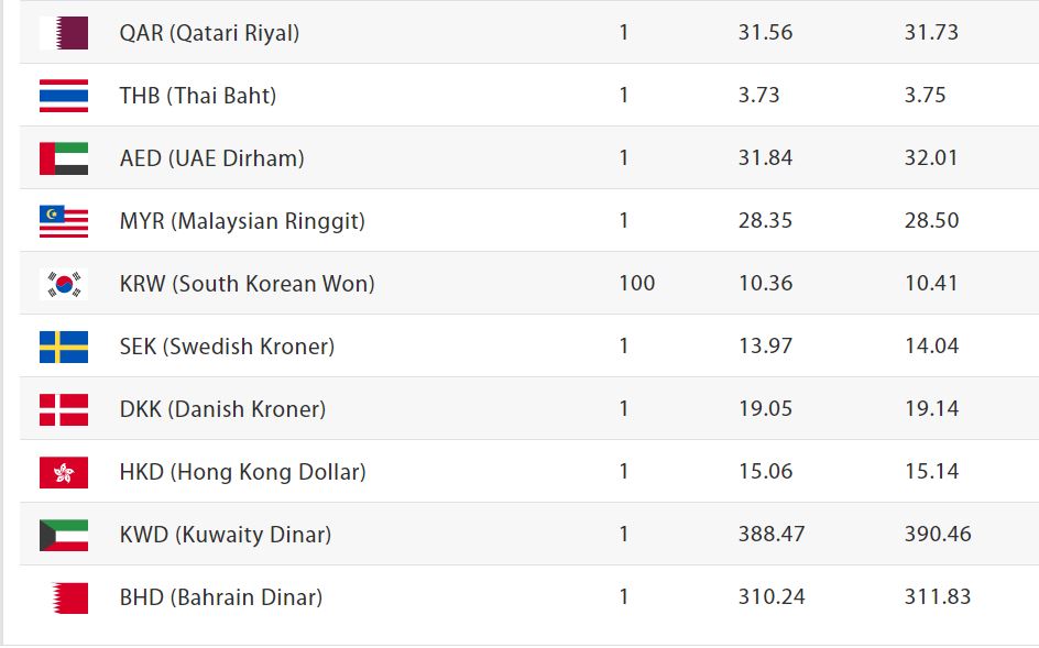 त्यस्तै कतारी रियलको खरिददर ३१ रुपैयाँ ५६ पैसा, बिक्रीदर ३१ रुपैयाँ ७३ पैसा, यूएई दिराम एकको खरिददर ३१ रुपैयाँ ८४ पैसा र बिक्रीदर ३२ रुपैयाँ ०२ पैसा कायम भइ कारोबार भइरहेको राष्ट्र बैंकले जनाएको छ ।