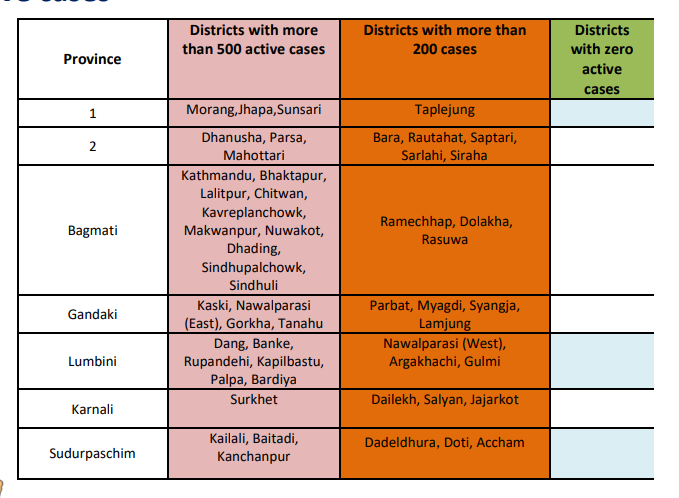 यी हुन् ५०० भन्दा बढी सक्रिय संक्रमित रहेका ३० जिल्ला :