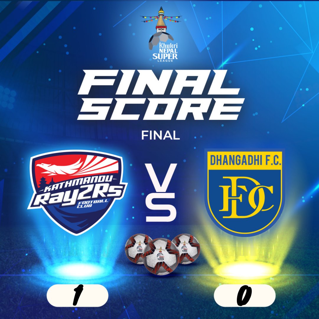 काठमाडौं। नेपालको पहिलो फ्रेन्चाइज लिग, नेपाल सुपर लिग (एनएसएल) को उपाधि काठमाडौं रेजर्सले जितेको छ। फाइनल खेलमा धनगढी एफसीलाई १-० गोल अन्तरले पराजित गर्दै काठमाडौंले पहिलो संस्करणको ‘एनएसएल’ उपाधि कब्जा गरेको हो।