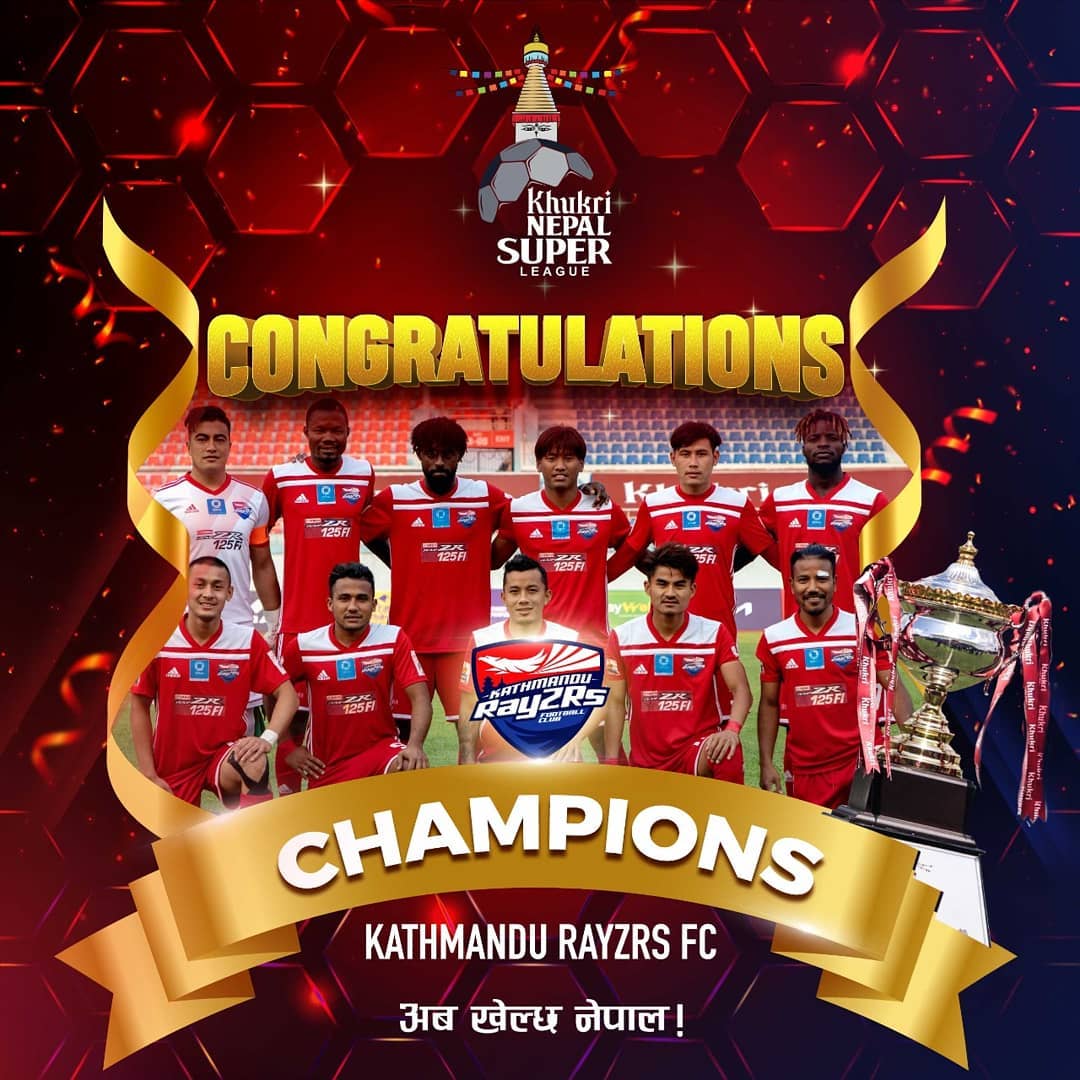 काठमाडौं। नेपालको पहिलो फ्रेन्चाइज लिग, नेपाल सुपर लिग (एनएसएल) को उपाधि काठमाडौं रेजर्सले जितेको छ। फाइनल खेलमा धनगढी एफसीलाई १-० गोल अन्तरले पराजित गर्दै काठमाडौंले पहिलो संस्करणको ‘एनएसएल’ उपाधि कब्जा गरेको हो।