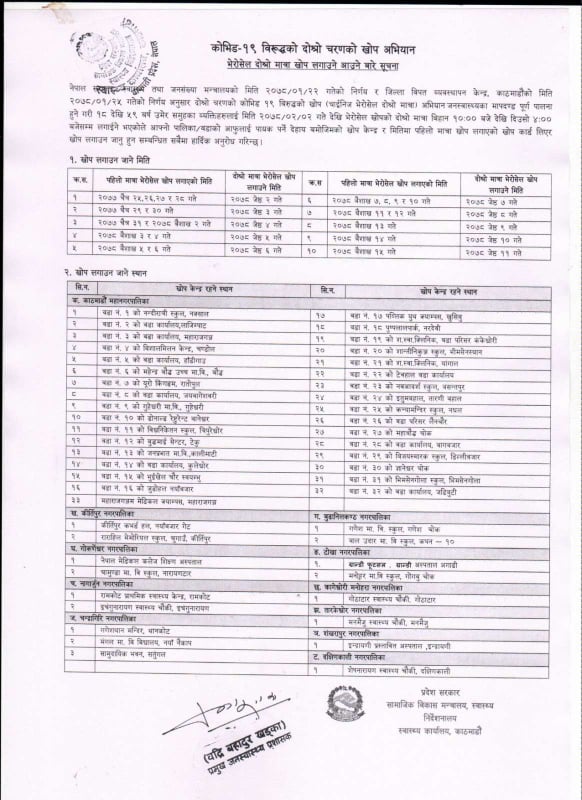 वैशाख ११ गतेसम्म चल्ने उक्त खोप अभियान उक्त खोप अभियान अन्गर्तत काठमाडौं महानगरपालिकाको ३३ वटै वडामा लगाइने बागमती प्रदेश सामाजिक विकास मन्त्रालयले जनाएको छ ।