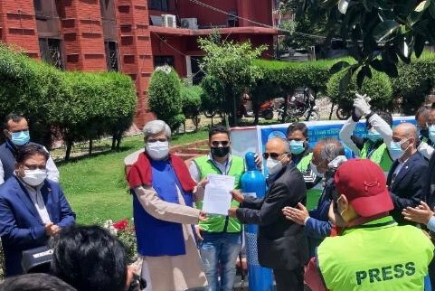 मध्यपूर्वमा रहेका नेपालीहरु एवं ओमानस्थित नेपाली दूतावासको सहयोग तथा सहकार्यमा हिजो नेपाल ल्याईका ७५ लाख भन्दा बढीको अक्सिजन सिलिण्डर आज एक कार्यक्रमका बीच संघका अध्यक्ष कुमार पन्त र संस्थापक अध्यक्ष डा उपेन्द्र महतोले माननीय स्वास्थ्य तथा जनसंख्या मन्त्री हृदयेश त्रिपाठीलाई हस्तान्तरण गरेका छन् ।