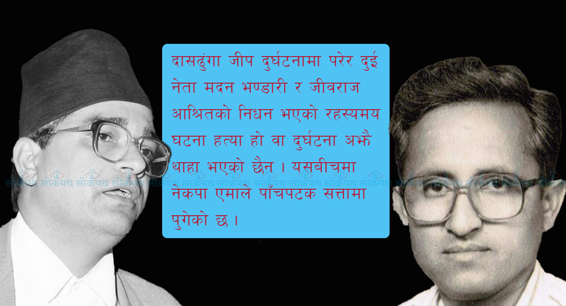 तत्कालीन नेकपा एमालेका महासचिव मदनकुमार भण्डारी र संगठन विभाग प्रमुख जीवराज आश्रित सडक दुर्घटनामा परी निधन भएको २७ वर्ष पूरा भएको छ । मदन र आश्रितको ०५० जेठ ३ गते राजनीतिक कामको शिलशिलामा पोखराबाट चितवन फर्कने क्रममा चितवनको दासढुंगामा जीप दुर्घटनामा परी निधन भएको थियो । जुन दुर्घटना आजसम्म पनि रहस्यको गर्भमा छ । जीप दुर्घटनामा परेर दुई नेताको निधन भएपछि त्यसलाई हत्या भन्दै तत्कालीन प्रमुख प्रतिपक्षी रहेको नेकपा एमाले आन्दोलनमा उत्रिएको थियो । सो घटना हत्या हो वा दुर्घटना भन्ने अझैसम्म खुल्न सकेको छैन ।