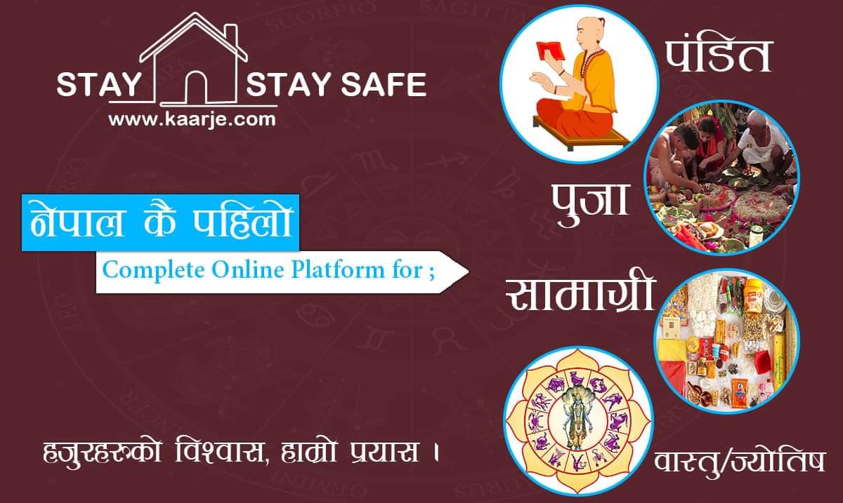 विश्व महामारीबाट ग्रस्त भएको बेला अनिवार्य गर्नुपर्ने कर्मकाण्ड तथा पूजा सामग्रीहरू ग्राहकलाई सहज र सुलभ माध्यमबाट उपलब्ध गराउने प्रमुख लक्ष्य राख्दै विगत एक वर्ष देखि कार्जे डटकमले सेवा दिदैं आएको छ । कार्जे डटकमले हालको परिस्थितिमा धेरैले भोग्नु परेको अभावलाई मध्यनजर गर्दै सेवा अझ विस्तृत बनाएको हो। प्ले स्टोरमा गएर कार्जे डटकमको एप डाउनलोड गरी सुरक्षित साथ घरमै बसेर पण्डित र पूजा सामग्री अर्डर गर्न सकिन्छ ।