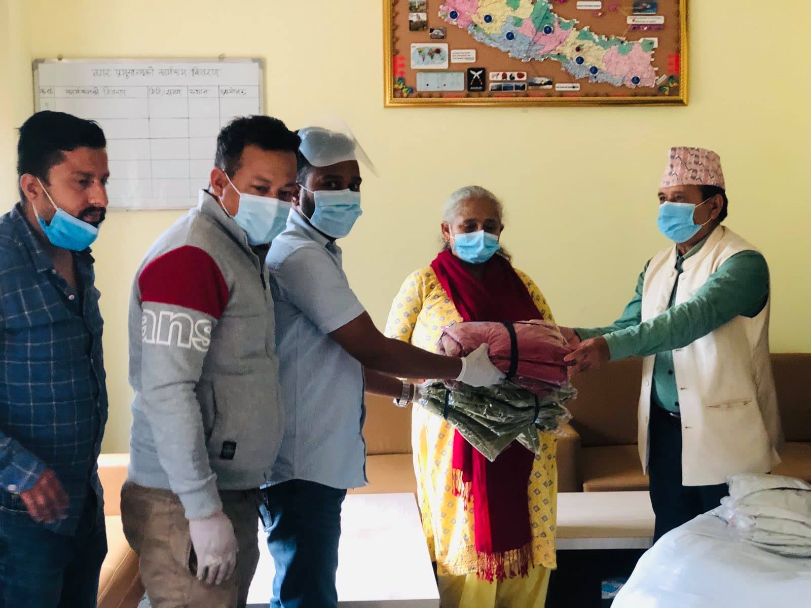 उनले नगरपालिकालाई महामारी नियन्त्रणका लागि ३५ हजार मास्क, १०० लिटर सेनिटाइजर, २५ थान पीपीई सेट लगायतका सामाग्रीहरु हस्तान्तरण गरेका छन् ।