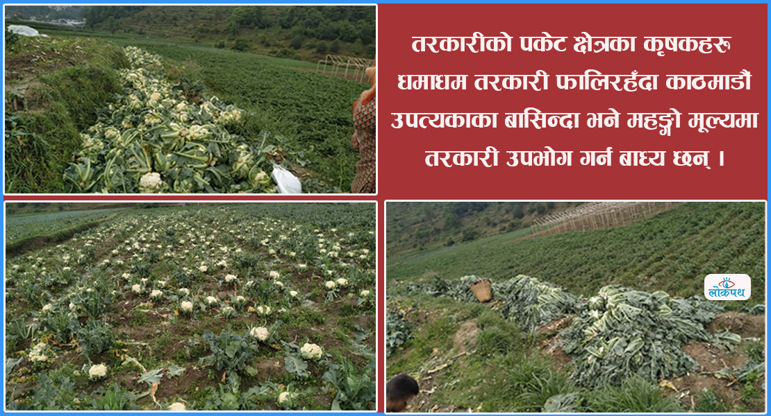 तरकारीको पकेट क्षेत्रका कृषकहरु धमाधम तरकारी फालिरहँदा काठमाडौं उपत्यकाका बासिन्दा भने महङ्गो मूल्यमा तरकारी उपभोग गर्न बाध्य छन् । ताजा तरकारी नपाउने समस्या त छदैछ, मनपरी मूल्यका कारण राजधानीवासीको भान्छा दिनहुँ महंगिदै गएको छ ।