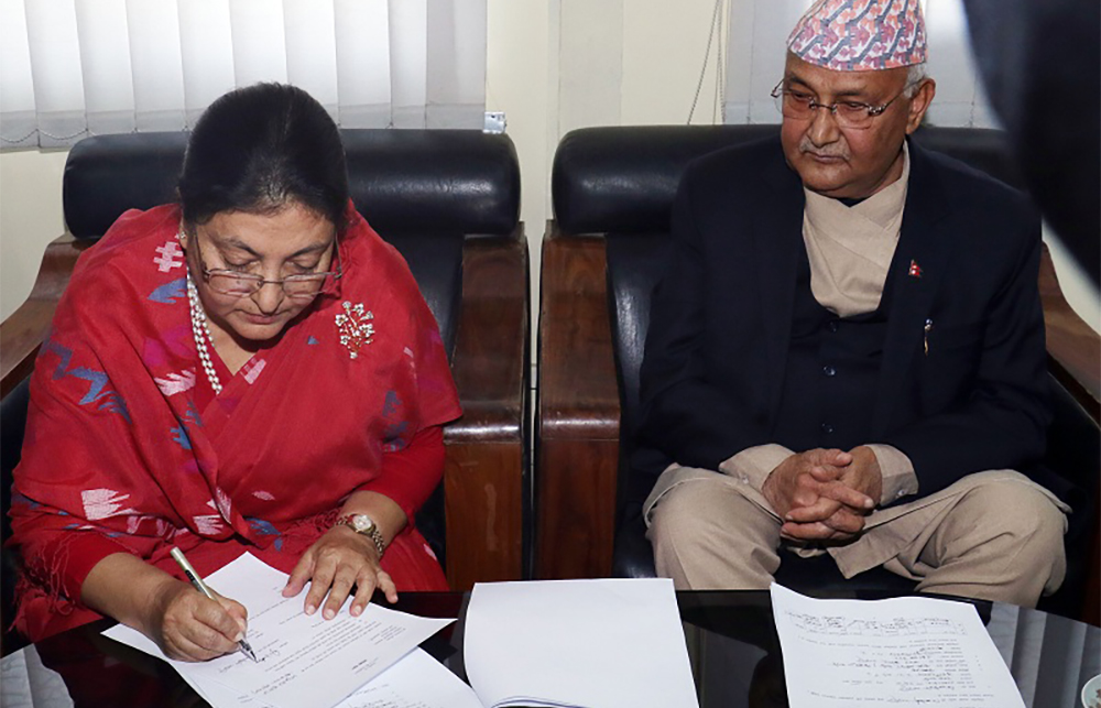 विपक्षी गठबन्धनको दाबी बलियो हुदाँहुदै पनि राष्ट्रपतिले त्यसमा निर्णय दिन अलमल गरिन । यसैबीच एउटा आंशका देखियो । कतै उनले ओलीलाई नै प्रधानमन्त्री बनाउने बाटो त रोजिनन् ? आखिर भयो पनि त्यही । ओलीले संसद विघटन गरेर निर्वाचनमा जान चाहेका थिए,राष्ट्रपति भण्डारीले त्यो चाहना पुरा गरिदिएकी छिन् ।