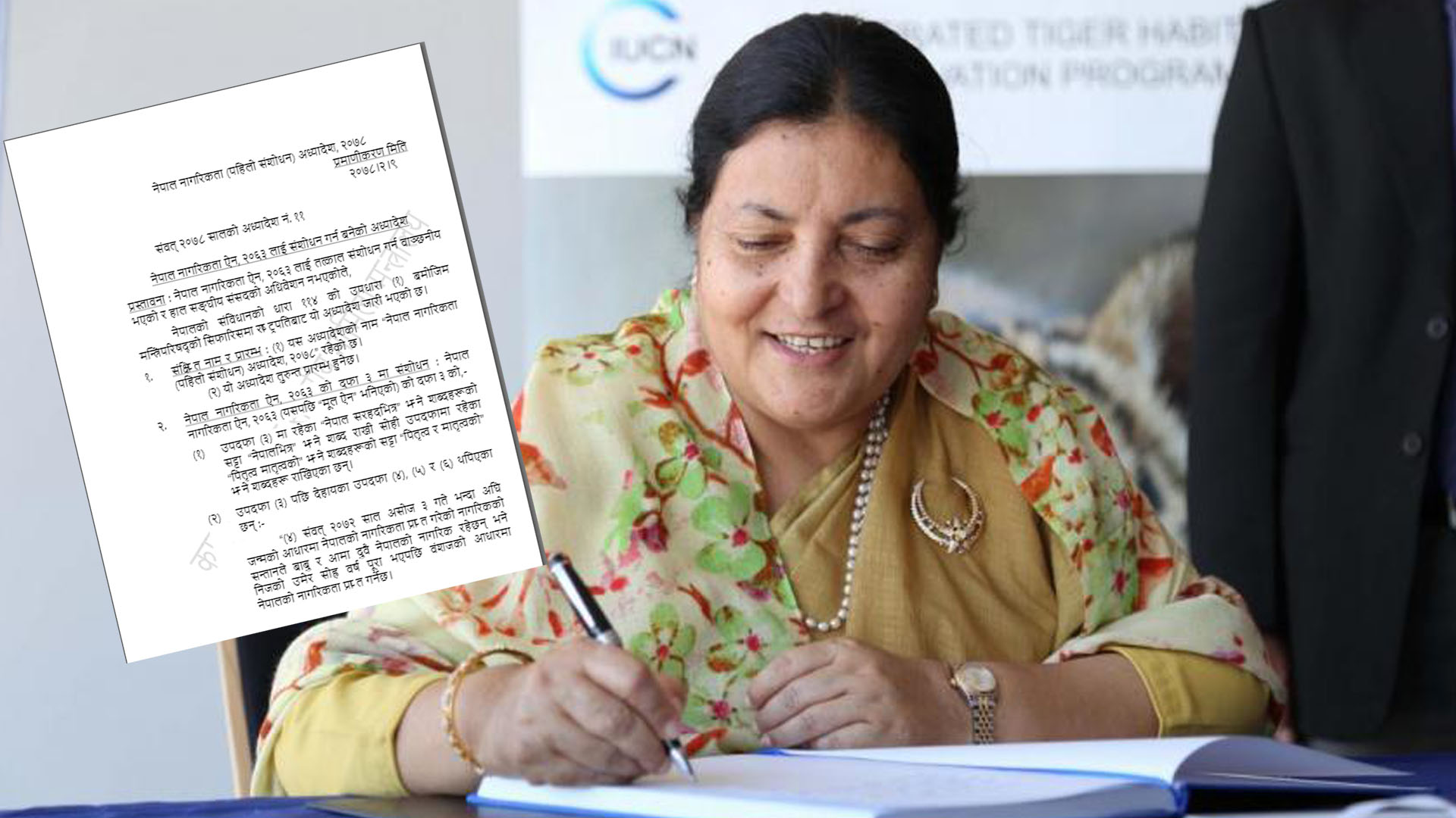 काठमाडौं । आइतवार (आज) राष्ट्रपति विद्यादेवी भण्डारीले नेपाल नागरिकता (पहिलो संशोधन) अध्यादेश २०७८ जारी गरेकी छिन् ।