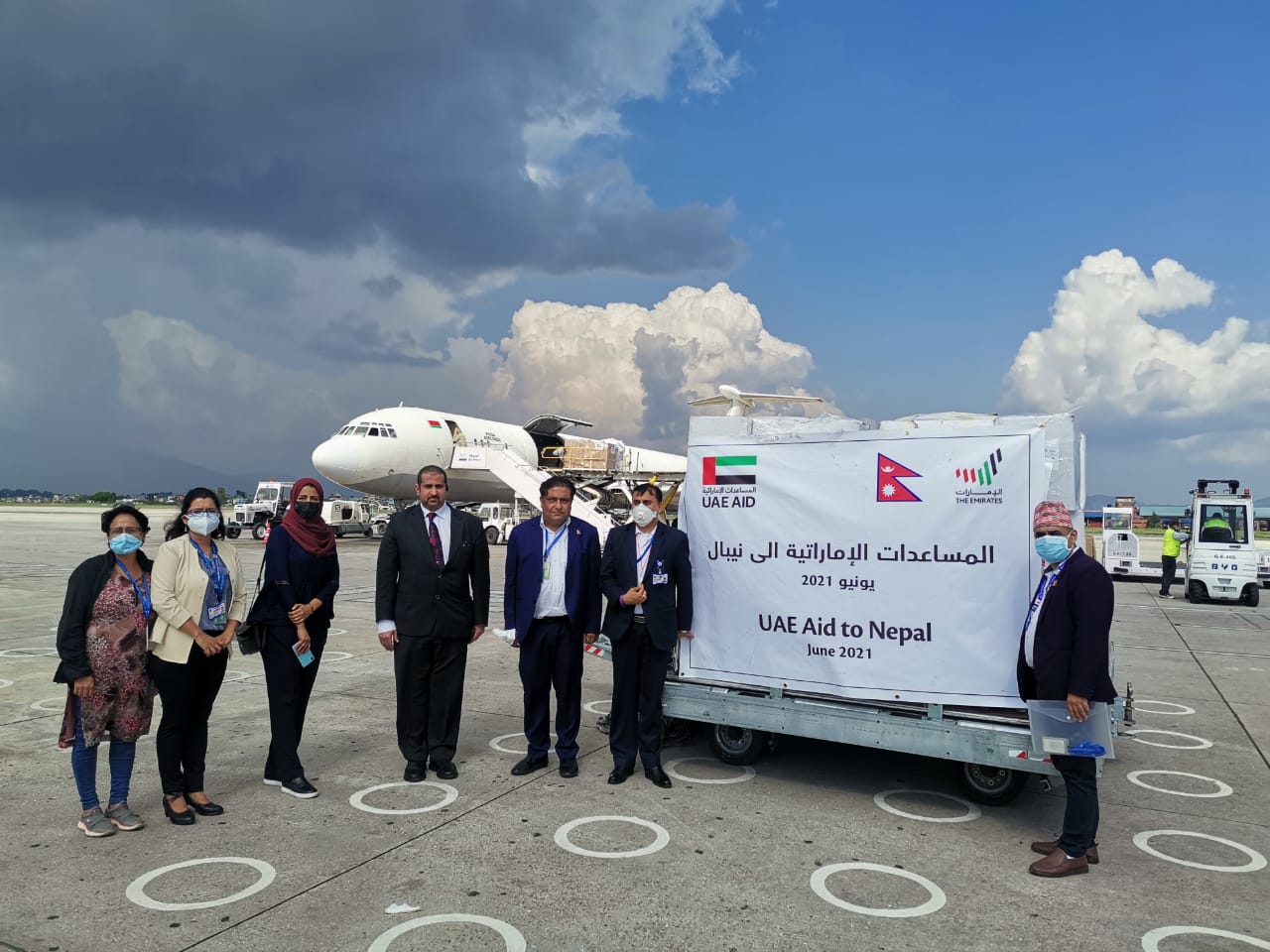 यूएईका लागि नेपाली राजदूत कृष्ण प्रसाद ढकालका अनुसार १५० भेन्टिलेटर, ट्रली, मास्कसहित करिब १२ टन स्वास्थ्य सामग्री तथा उपकरणहरू नेपाल पठाएको बताएका छन्। नेपाली दूतावासको विशेष पहलमा यूएई सरकारले उक्त स्वास्थ्य सामग्री नेपाल पठाएको हो।