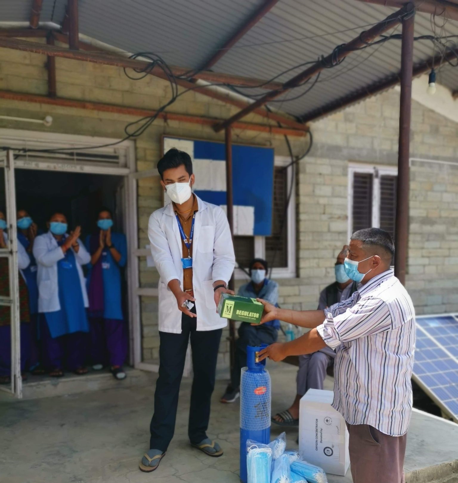 त्यसैगरी वडा नम्बर ४ को खाँडादेवी आधारभूत स्वास्थ्य चौकी ,भीमसेनस्थान, खँडादेवी स्वास्थ्य इकाई ,सान्ने र वडानम्बर ५ को स्वास्थ्य चौकी भोटेचौर लगायतका स्वास्थ्य संस्थालाई अक्सिजन सिलिण्डर,मास्क पीपीइ सेट,स्यानिटाइजर लगायतका स्वास्थ्य सामग्री वितरण गरेको हो । सम्पर्क समितिका सभापति राजनारायण श्रेष्ठको विशेष पहलमा ती सामग्री वितरण गरिएको हो ।