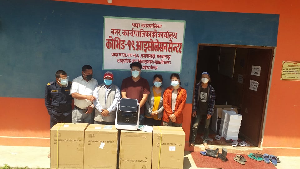 काठमाडौं । मकवानपुरको थाहा नगरपालिका ६ स्थित कोभिड १९ आइसोलेसन सेन्टरलाई ५ थान अक्सिजन कन्सन्ट्रेटर सहयोग गरिएको छ। लामो समयदेखि काठमाडौंमा बसोबास गर्दै आएका बज्रवाराहीका बच्चु गोपालीले अक्सिजन कन्सन्ट्रेटर सहयोग गरेका हुन् ।