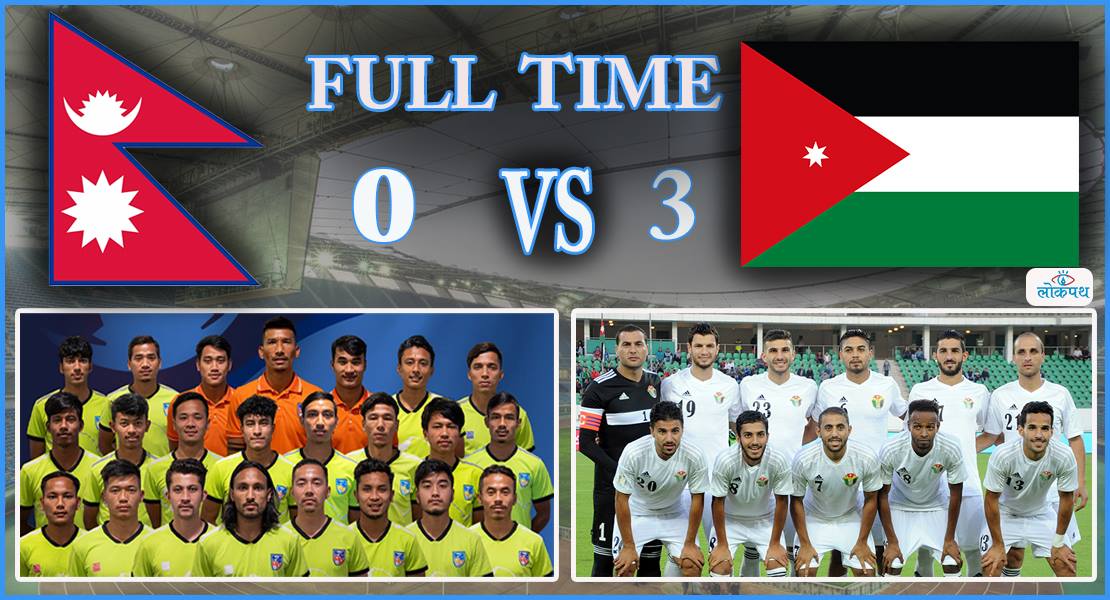 कुवेतको ‘जबर अल-अहमद अन्तराष्ट्रिय रंगशाला’मा खेलिएको आजको खेलमा बलियो टोली जोर्डनले नेपालविरुद्ध सहज जित प्राप्त गरेको छ।