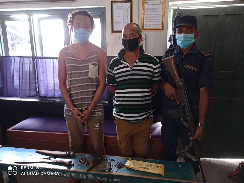 मंगलवार विशेष सूचनाको आधारमा ईलाका प्रहरी कार्यालय बेलबारीबाट खटिएको टोलीले स्थानीय ५१ वर्षीय गणेश लिम्बु र बेलवारी नगरपालिका-२ लालभित्तिका ४१ वर्षीय पदम कुमार लिम्बुलाई पक्राउ गरेको हो ।