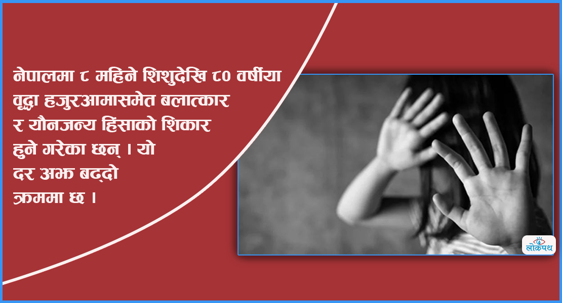 यी त केहि प्रतिनिधि घटना मात्र हुन् । तपाई हाम्रो जानकारीमा नआएका र नल्याइएका कति यस्ता घटनाहरु घटिराखेका छन् । नेपालमा नाबालिकादेखि ७०–८० वर्षीया वृद्धा हजुरआमा समेत बलात्कार अनि यौनजन्य हिंसाको शिकार हुने गरेका छन् ।