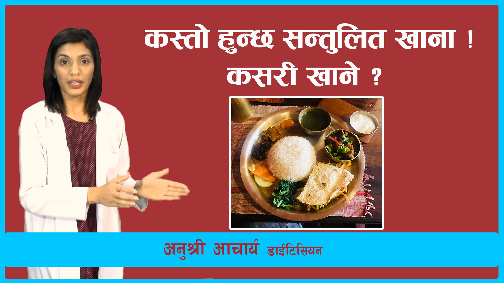 हामीले खाने गरेको खानेकुरामा कार्बोहाइड्रेट, प्रोटिन, भिटामिन, मिनिरल, फाइबर, आइरन जस्ता विभिन्न पदार्थहरू रहेका हुन्छन् । विभिन्न पौष्टिक तत्त्वहरू भएका खानेकुराहरूलाई सन्तुलित रूपमा खाने हाम्रो तरिका नभएको डाइटिसियन अनुश्री आचार्य बत्ताउँछिन् ।