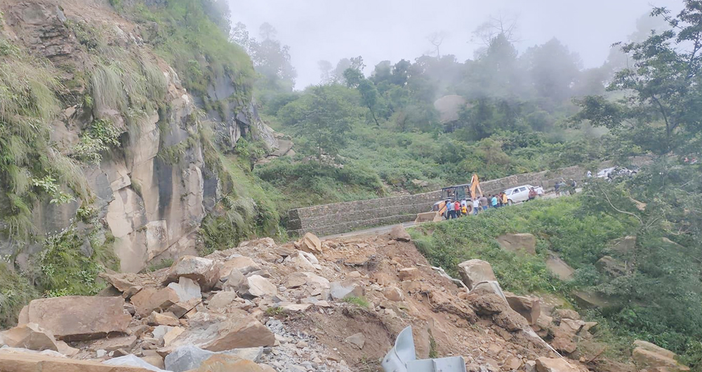 काठमाडौं । सोमवार रातिदेखिको वर्षाका कारण डोटीको जोरायल गाउँपालिका–१ गैरामा पहिरो आउँदा अत्तरिया स्याउले जोड्ने भीमदत्त राजमार्ग अवरुद्ध भएको छ । सडक माथिबाट आएको पहिराका कारण राजमार्ग अवरुद्ध भएको जिल्ला प्रहरी कार्यालय डोटीले जनाएको छ ।