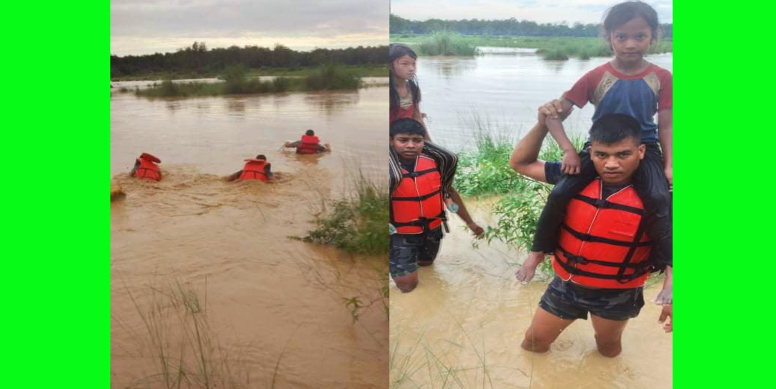 विजयनगर गााउँपालिका १ मधनगरा स्थित अरुवाखोलाको बिचमा फसेका ८ जना बालबालिकाहरुलाई सशस्त्र प्रहरी बल बि .ओ.पी जुवावैराठ कपिलवस्तु बाट स.प्र.नि सत्य कुमार बुढाथोकीको कमाण्डमा खटिएको ११ जनाको प्रहरी टोलीले उनीहरुको सकुशल उद्दार गरेको हो ।