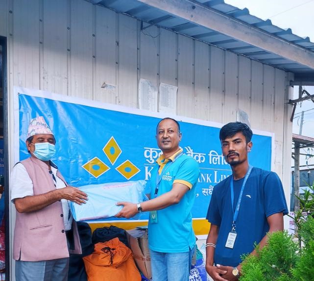 बैंकले सिन्धुपाल्चोकको मेलम्ची नगरपालिका क्षेत्रमा बाढी र पहिरोले प्रभावित नागरिकहरुलाई सहयोग स्वरुप ३०० थान दैनिक उपभोग्य खाद्य सामाग्री, अस्थायी बसोबास गर्नका लागि टेन्ट, ५०० कम्बल, महिलाहरू तथा शिशुहरूका लागि प्रयोग हुने अत्यावश्यक सामग्रीका साथै अत्यावश्यक औषधीहरू प्रदान गरेको हो ।