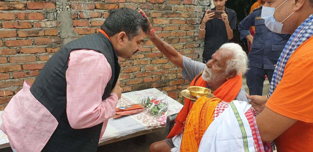 जनकपुरमा वडाध्यक्षदेखि प्रमुखसम्म बनेका राजदेवलाई डा. झाले आज बिहान विद्यापति चौकस्थित आनंद नगरमा रहेको उनको घर पुग्दा स्थानीयबासीको भीड लागेको थियो ।