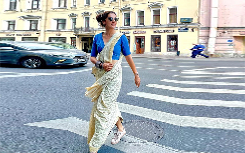 काठमाडौं । बलिउड स्टार अभिनेत्री तापसी पन्नुले रुसको सडकमा सारी लगाएको तस्वीर अपलोड गरेकी छिन् । सारीमा स्पोर्ट शुज लगाएकी उनको तस्वीरले अहिले सामाजीक सञ्जालमा निकै चर्चा पाइ रहेको छ ।