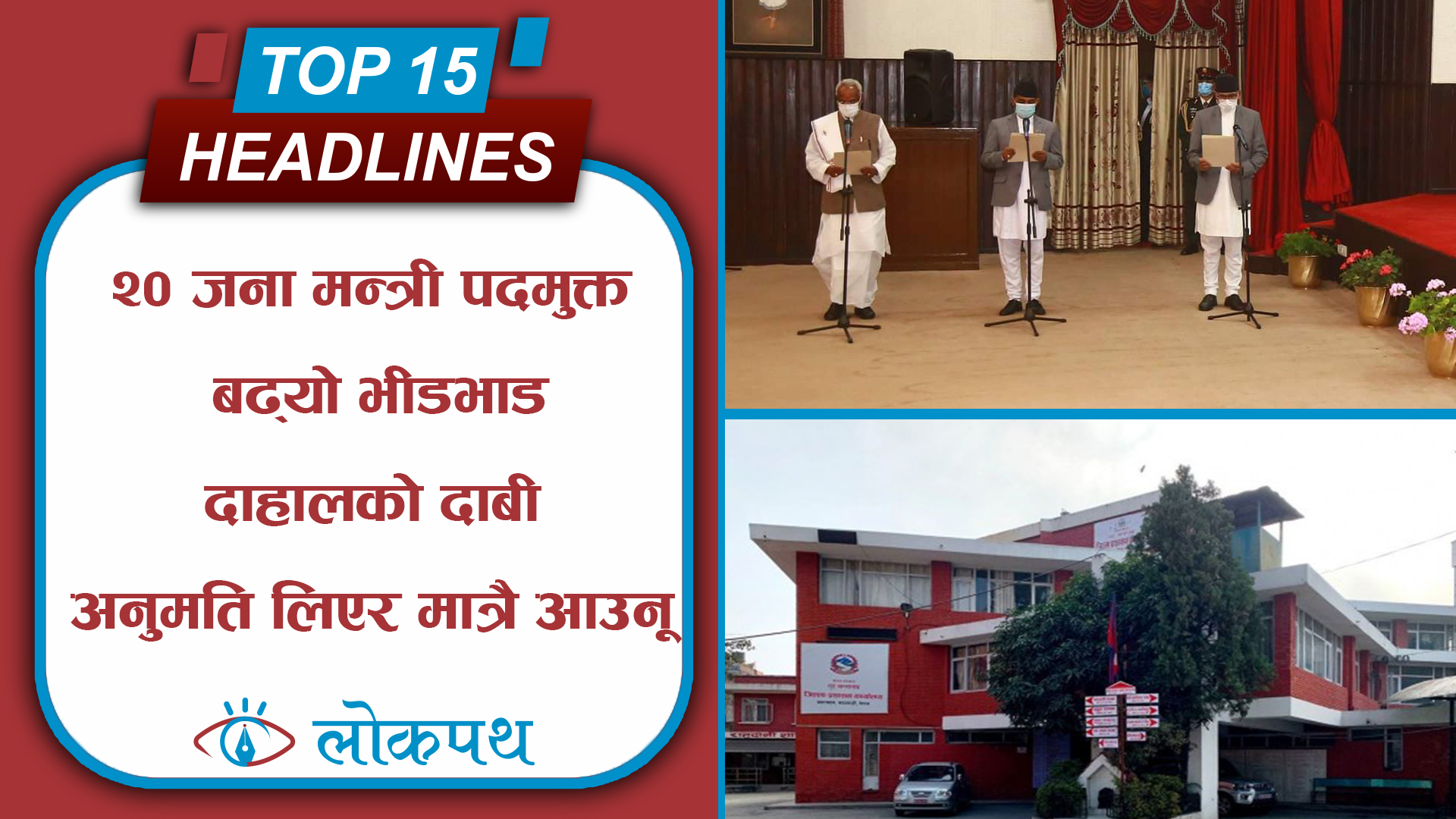 १. प्रधानमन्त्री केपी शर्मा ओलीले संसद विघटनपछि गरेको मन्त्रिपरिषद विस्तार सर्वोच्चद्वारा बदर, २० जना मन्त्री पदमुक्त