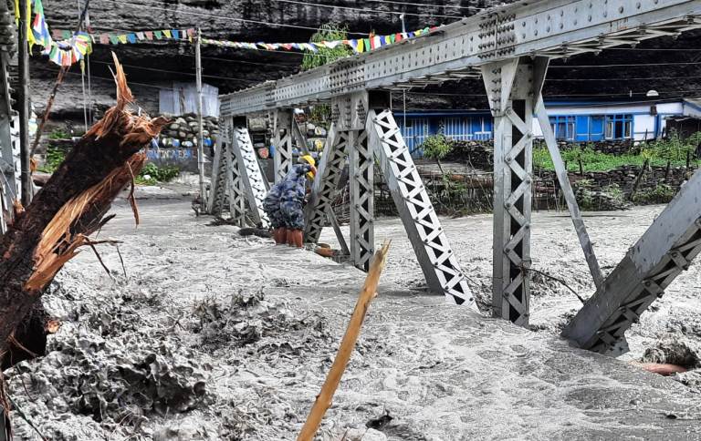 मनाङ । मनाङ जिल्ला भई बग्ने मस्र्याङ्दी नदीमा फेरि पानीको वहाव बढेको छ । जिल्ला प्रहरी कार्यालयका अनुसार चामे गाउँपालिका –४ र ५ जोड्ने नदीमा पानीको मात्रा बढेर मोटरेवल पुलको माथि आएको छ ।