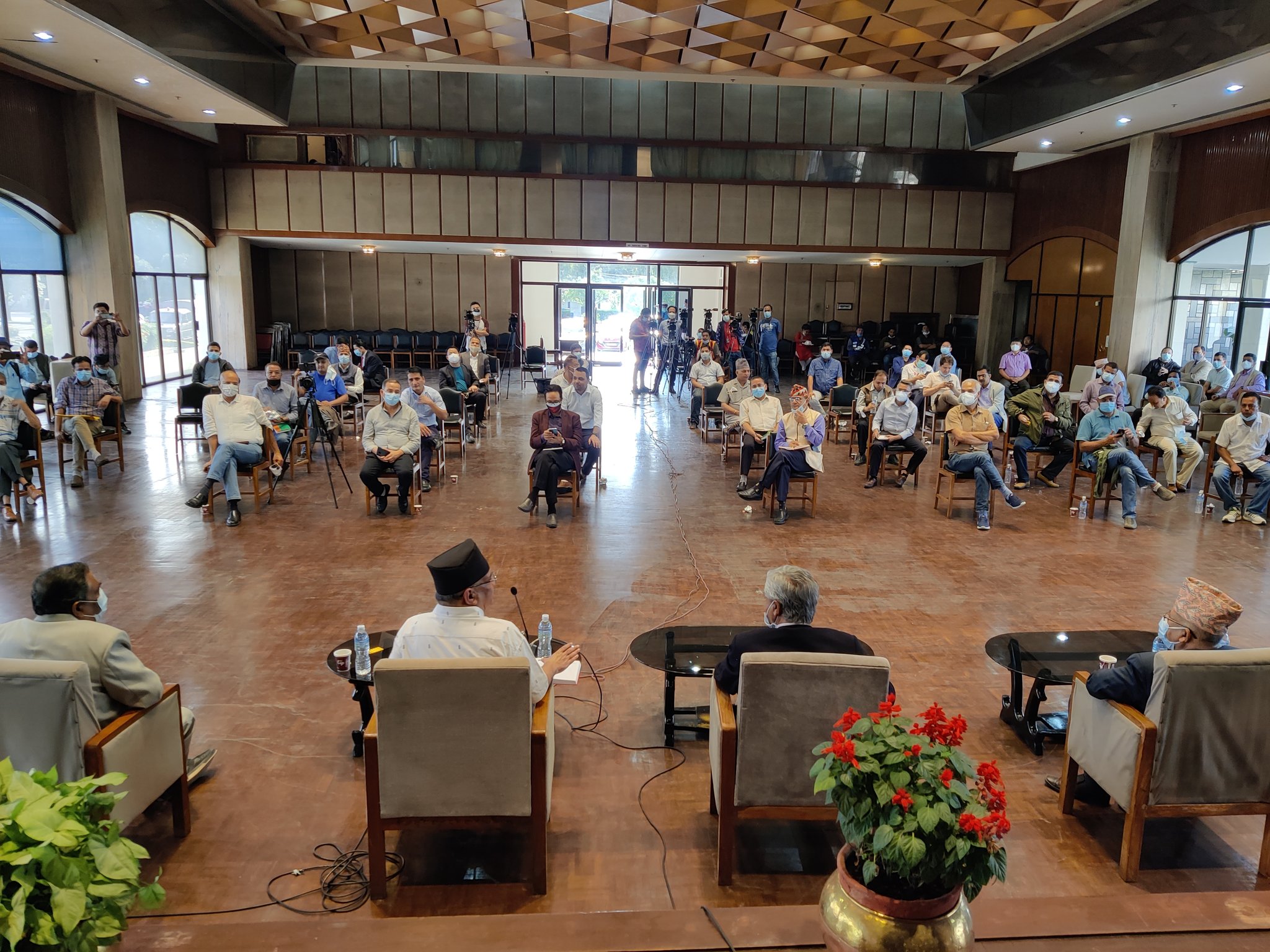 काठमाडौं । विपक्षी गठबन्धनले बिहीवार (आज) सम्पादक एवम् पत्रकारहरुसँग अन्तर्क्रिया गरेको छ । कार्यक्रममा पूर्व प्रधानमन्त्री एवम् नेपाली कांग्रेसका सभापति शेरबहादुर देउवा, पूर्व प्रधानमन्त्री एवम् एमाले वरिष्ठ नेता माधवकुमार नेपाल, पूर्व प्रधानमन्त्री एवम् माओवादी केन्द्रका अध्यक्ष पुष्पकमल दाहाल प्रचण्ड, जनता समाजवादी पार्टी (जसपा) का अध्यक्ष उपेन्द यादव र राष्ट्रिय जनमोर्चाका महासचिव मनोज भट्ट लगायतले आफ्नो भनाइ राखेका थिए ।
