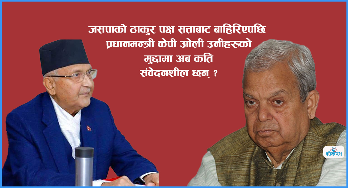 सर्वाेच्च अदालतले फागुन २३ मा नेकपाको एकतामा प्रश्नचिन्ह उठाउँदै एमाले र माओवादी केन्द्रलाई ब्यूताँइदिएपछि आफ्नो सत्ता जोगाउनका लागि प्रधानमन्त्री ओलीले जसपाको महन्थ ठाकुर पक्षमा आँखा लगाए ।
