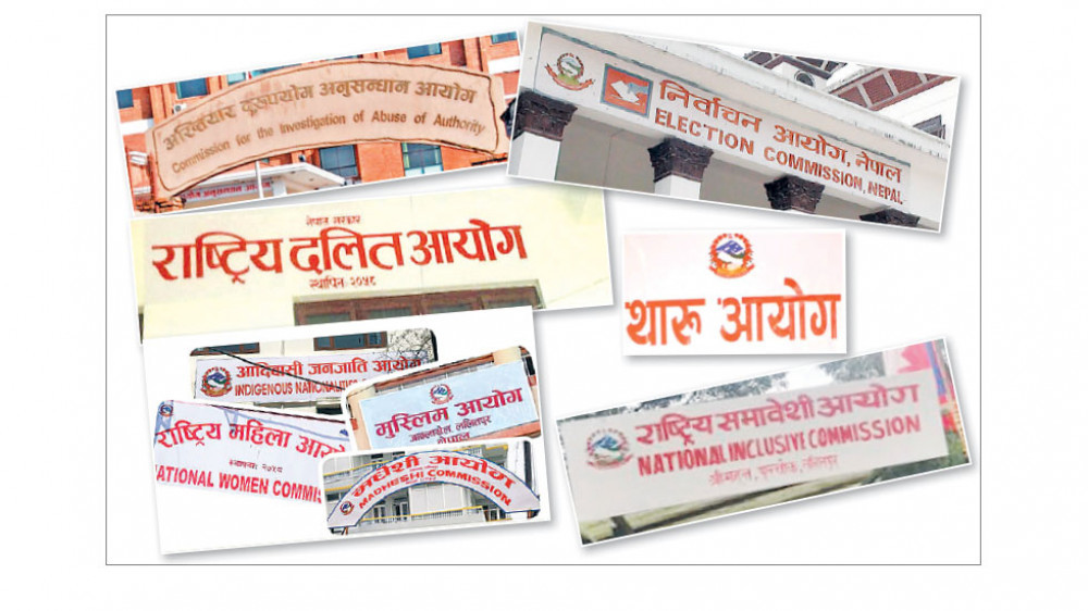 काठमाडौं । राज्यका अंगहरूबीचको शक्ति सन्तुलन र स्वेच्छाचारितामा समेत निगरानीका लागि खडा गरिएका संवैधानिक आयोगहरू संविधानको मर्मविपरीत नियुक्ति भएका पदाधिकारीले भरिभराउ भएका छन् ।