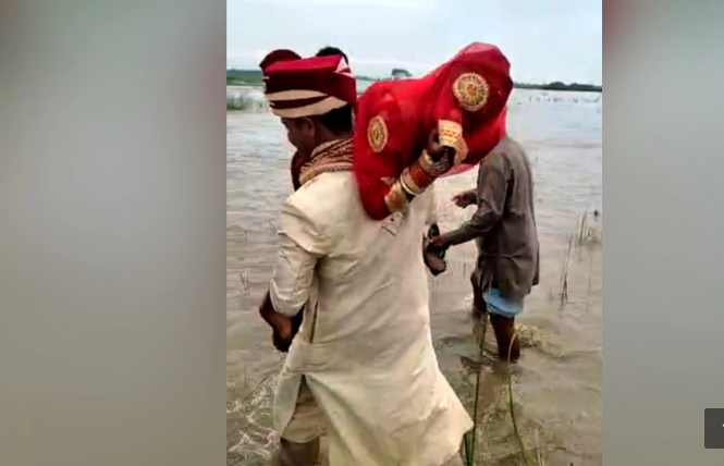 बेहुलीलाई घर लैजाने क्रममा बाटोमा खोला थियो । खोला तर्ने क्रममा बेहुलाले बेहुलीलाई आफ्नो काधमा बोकेर खोला पार गरेको तस्वीर अहिले चर्चामा रहेको छ ।